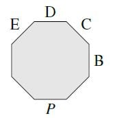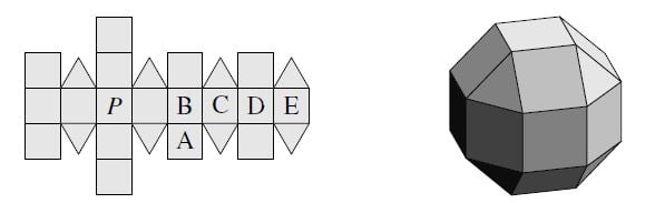 The diagram shows a vertical cross-section through the centre of the rhombicuboctahedron when it is placed so that the face marked P is face down.