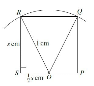 It follows that the triangles POQ and SOR are congruent, by the RHS congruence condition. [RHS stands for Right-angle, Hypotenuse, Side.] It follows thatOP=OS=12s cm. Therefore, by applying Pythagoras’ Theorem to the triangle SOR, we have