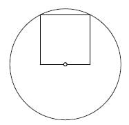 4.1 The circle has radius 1 cm. Two vertices of the square lie on the circle. One edge of the square goes through the centre of the circle, as shown.