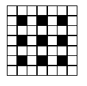 The diagram shows a square board in which strips of white squares alternate with strips of black and white squares. A larger board, constructed in the same way, has 49 black squares.