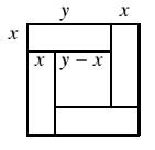 Let the length of a short side of a rectangle be x and the length of a long side be y. Then the whole square has side of length y+x, whilst the small square has side of length yx.