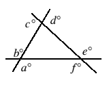 The angles marked a°, c° and e° may be considered to be the exterior angles of the triangle, and therefore have a total of 360°. As b°=a°, d°=c° and f°=e° (all pairs of vertically opposite angles), b°+d°+f°=360°. So a°+b°+c°+d°+e°+f°=720°.