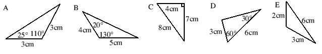 In a triangle, the smallest angle lies opposite the shortest side which makes B impossible since 20° is the smallest angle, but 5 cm is not the shortest side.
