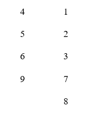 The numbers 1 to 9 have been written on cards and placed into two columns, like this:
