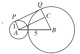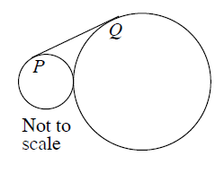 The diagram shows points A and B, which are the centres of the two circles, and C, the point on BQ such that AC is parallel to PQ.