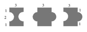 2.1 The perimeter of the three shapes shown are made up of straight lines and semi-circular arcs of diameter 2.