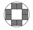 5.1 The diagram shows a pattern of eight equal shaded squares inside a circle of area π square units.