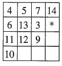 It now follows that * must be replaced by 15, since if 15 is placed in one of the other three vacant squares, we get a total of 45 (second column, too big), 34 (third column, same as diagonal) or 47 (third row, too big).