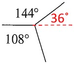 Therefore each interior angle of the regular polygon formed by the inner sides of the pentagons is (360 - 2 × 108)° = 144°.