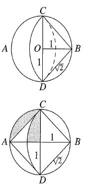ADBC is a square since its sides are all equal to the radius of the arc CD and ACB=90° (angle in a semicircle).