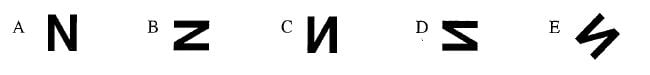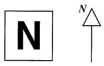 4.1 A square card printed with the letter N is held horizontally, as shown in the diagram, where the arrow indicates the direction of North.