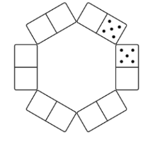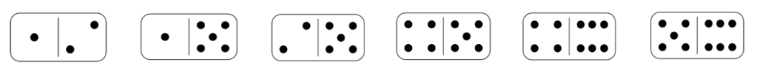 Dominic wants to place the six dominoes above in a hexagonal ring so that, for every pair of adjacent dominoes, the numbers of pips match.