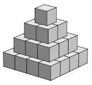 The diagram shows a pyramid made up of 30 cubes, each measuring 1m × 1m × 1 m.