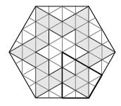 In this way the hexagon is divided up into a number of congruent equilateral triangles and, around the edge, some triangles each congruent to half of the equilateral triangles.