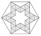 We could now use the grid to work out the shaded and unshaded areas in terms of the areas of the equilateral triangles, and hence work out which fraction of the area of the hexagon is shaded.