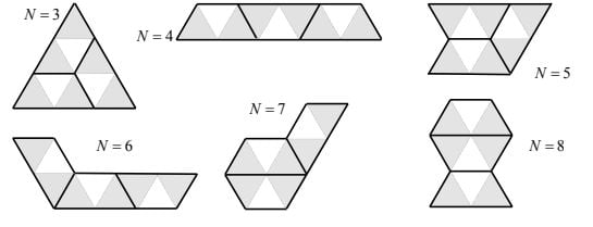 The three trapeziums have 12 edges in total. Whenever two of them are joined together, the total number of edges is reduced by at least 2. So the maximum possible value of N is 122×2=8.
