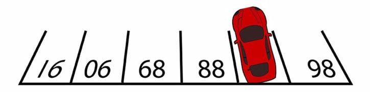 In order to solve this puzzle, you need to imagine looking at the numbers from the driver’s point of view. Starting from the left, the driver would see 91 – 90 – 89 – 88 – XX – 86. So, then it is obvious that the hidden number is 87.