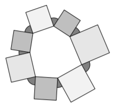 3.1 Seven squares are drawn on the sides of a heptagon so that they are outside the heptagon, as shown in the diagram.