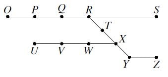In this way she visits all the stations and goes through just three of them, R, Y and X more than once.