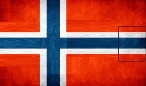 Next, here is the flag of Norway with a black rectangle showing how it contains the flag of Thailand.