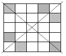 In the diagram on the right we have shaded the three additional squares that must be shaded if the square is to have rotational symmetry of order 2. With these squares shaded the square has both the diagonals as lines of symmetry.