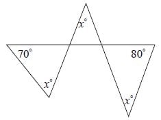 But, if we look at option B, where x=35, then we run into a problem. If x=35 in the left triangle, then y=75. So, in the middle triangle, z=70. Then in right triangle we have x+z+80=180, or 35+75+80180, which is not at all consistent.