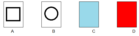 4.1 A set of cards has a shape on one side and a colour on the other side.