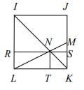 Let I, J, K and L be the vertices of the square. Let M be the midpoint of JK, let N be the point where the diagonal IK meets LM. Let the line through N parallel to LK meet IL at R and JK at S. Let T be the foot of the perpendicular from N to LK. Let the square have side length s.