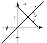 The line y=x goes through the point (1, 1). So, if it is rotated about this point, the resulting line also goes through (1, 1). This means it could only be the graph in diagrams A or B. However, diagram B shows the graph of y=x. So, assuming that one of the diagrams is correct, it must be diagram A.
